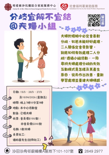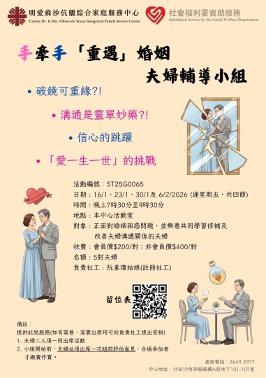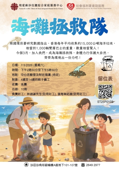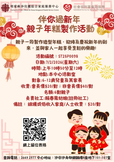 日期: 5/1、12/1、19/1、26/1及 2/2/2026 (星期一,共5節)親子活動日31/1/2026(星期六)